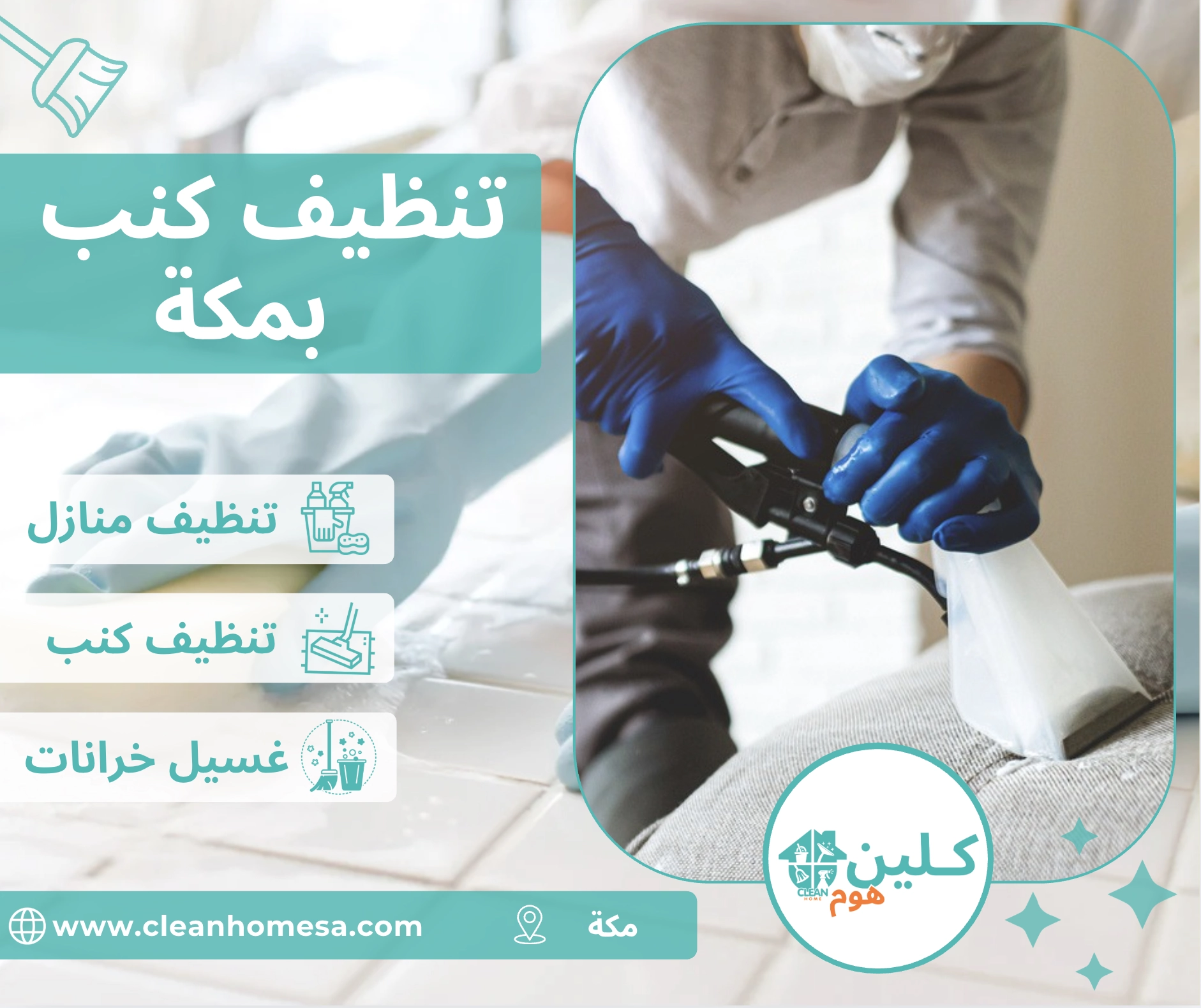 تتميز شركة كلين هوم بمكة بخدمات متكاملة تهدف إلى تنظيف الكنب بشكل احترافي ودقيق يراعي نوع القماش ودرجات الاتساخ، كما تتم عملية التنظيف عبر مراحل منظمة تبدأ من الفحص وحتى التجفيف، لضمان نظافة عميقة تدوم لفترات طويلة.